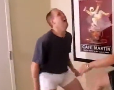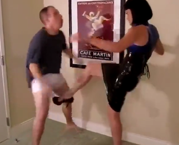 女が金蹴りをします。