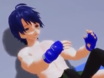 戦いに勝った女の子が電気あんまをします。