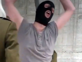 女性軍人が捕虜を金蹴り、玉潰し、玉叩きをします。