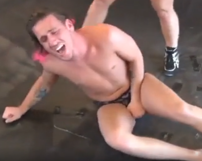 男女がプロレスをします。